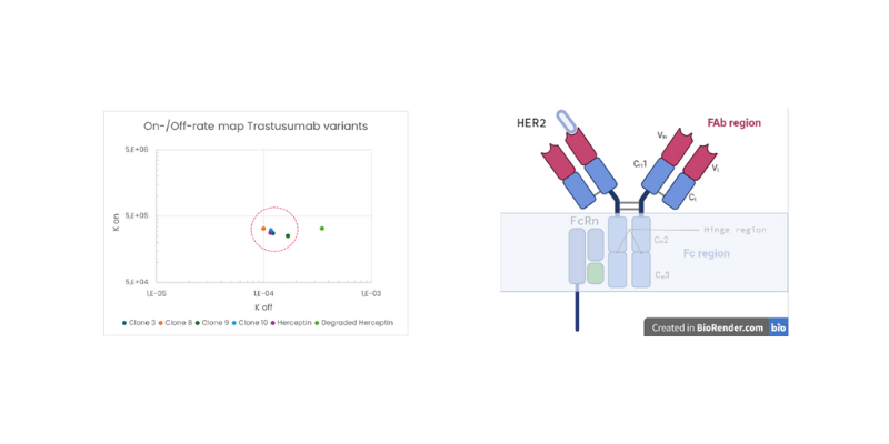 Accelerated Trastuzumab clone selection by early all-in-one insights into yield, Fab & functional Fc affinity, confirmed by structural data.